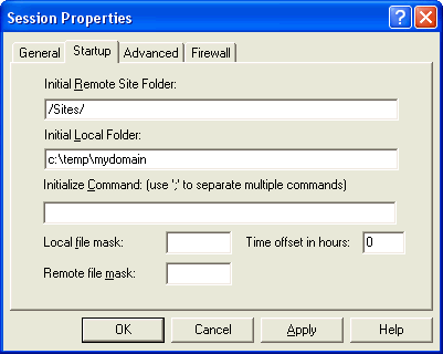 11. Under the "Initial Local Folder" label, add the local drive and folder path to your development site. (This saves you having to navigate to youf development folder to transfer files each time you logon to your web site.)