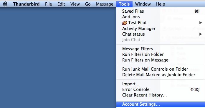 2. On the top menu bar, choose Tools --> Account Settings.