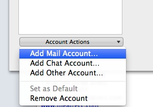 3. In the lower section of the pop-up window, click Account Actions --> choose Add Mail Account....