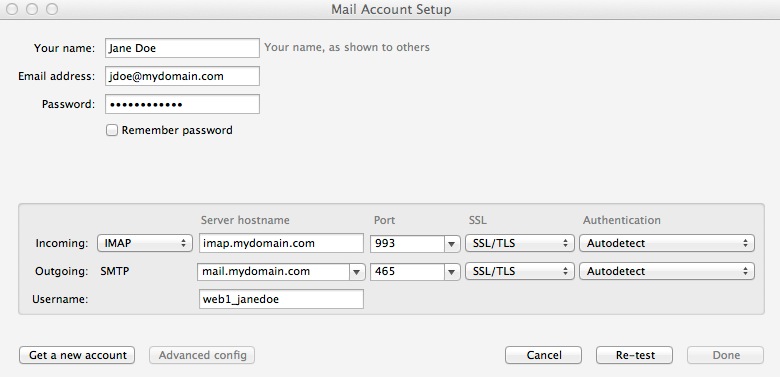 Email address: Enter your main e-mail address (e.g. jdoe@mydomain.com)