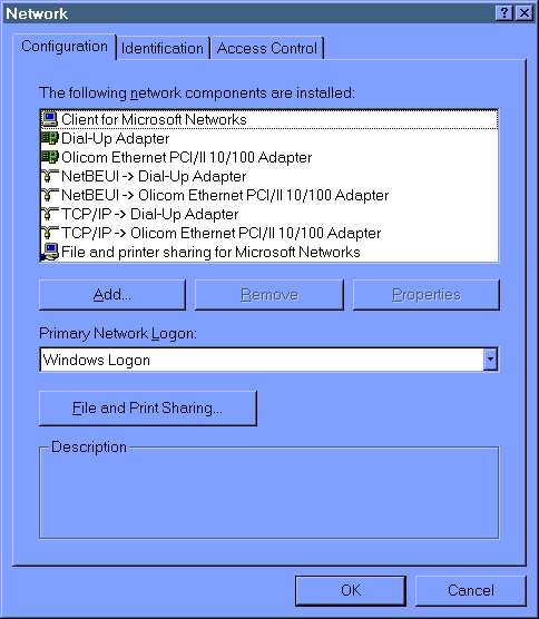 - The last option (MOST LIKELY with FrontPage98) involves your "Network" icon in your control panels. FrontPage requires that "Client for Microsoft Networks" be installed. Should look like this: