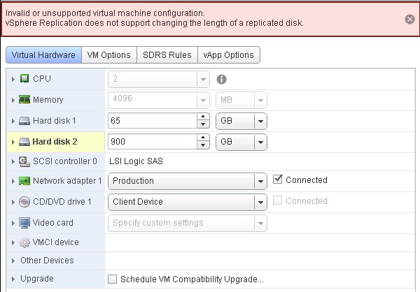 vSphere Replication does not support changing the length of a replicated disk.