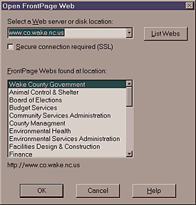 1. Under "File" on the menu bar choose "Open Frontpage Web".