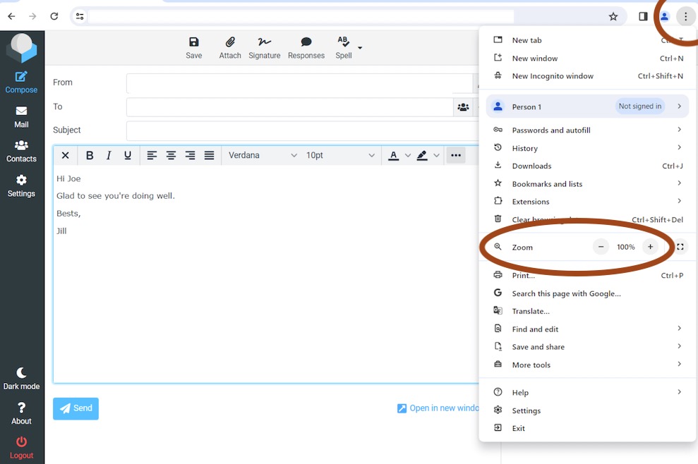 2. In upper right corner in Chrome, Edge, or Firefox, etc., click on the three dots in a column.