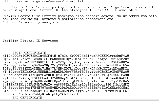 When Verisign is finished, they will send you an email and it will contain your certificate. It will look like figure 4.