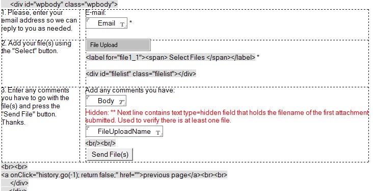 For the label and for displaying the list of files selected, we used pass-thru HTML.