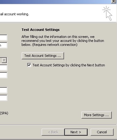 7. You can click the "Test Account Settings" button to verify what you have changed.