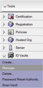 - Under the tool on the right, Open ID Vaults, and click the Manage button/option.