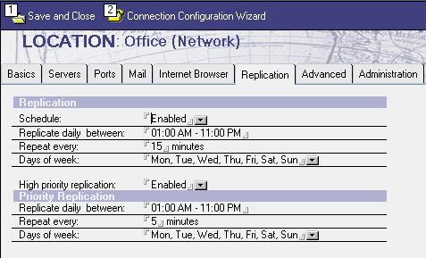 - Under the Replication heading, there are two sections for normal and high priority replication below the normal section.