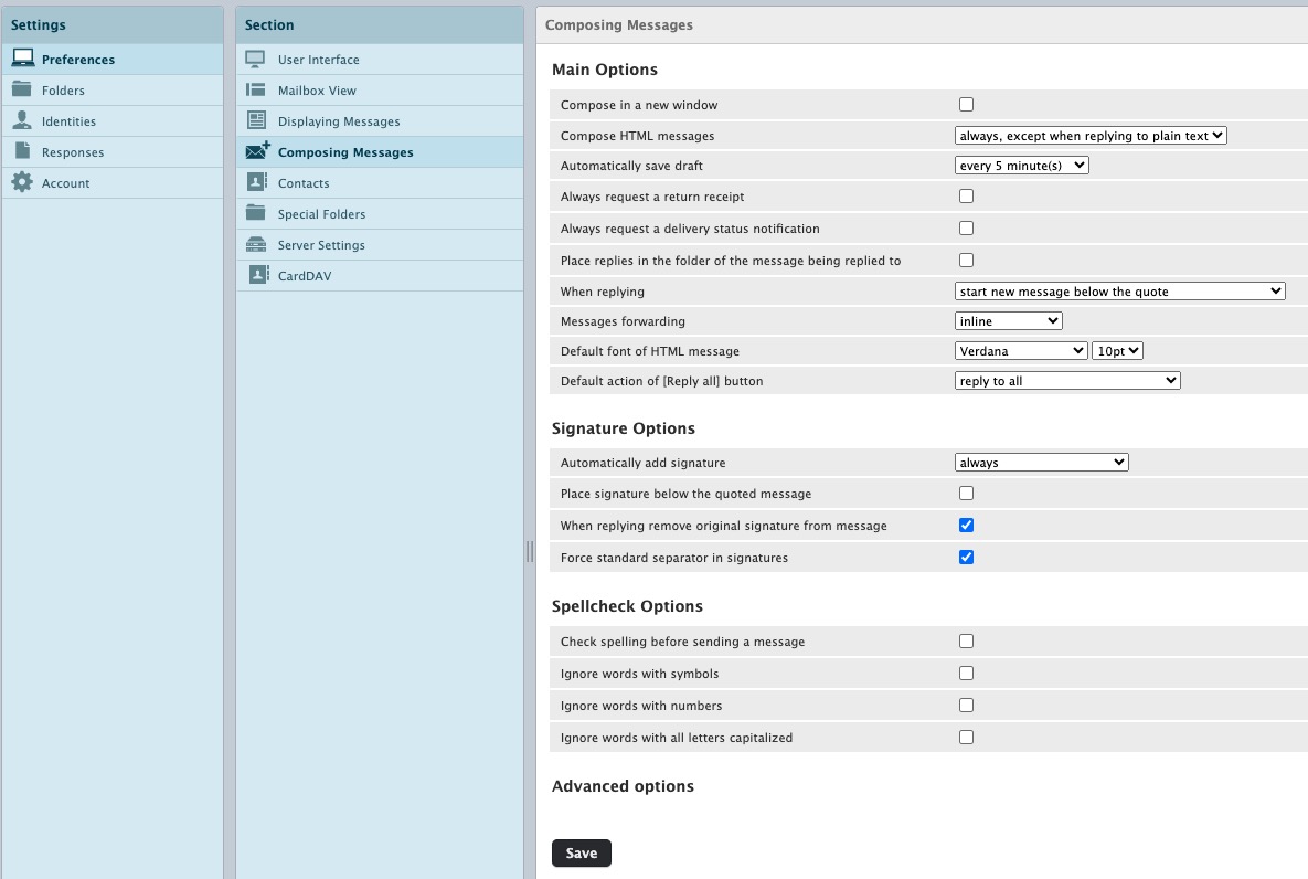 2. On the left select Preferences --> Composing Messages.